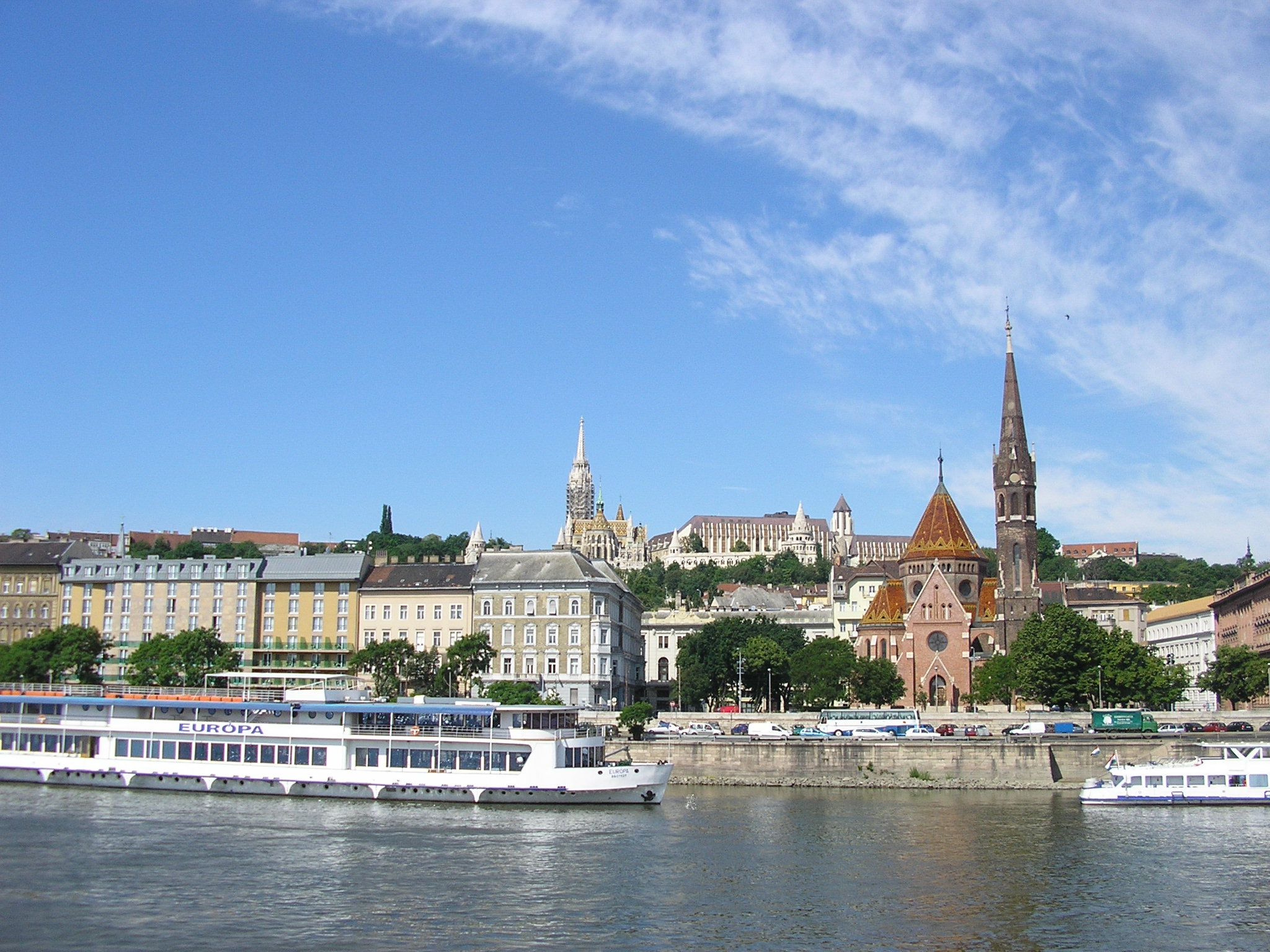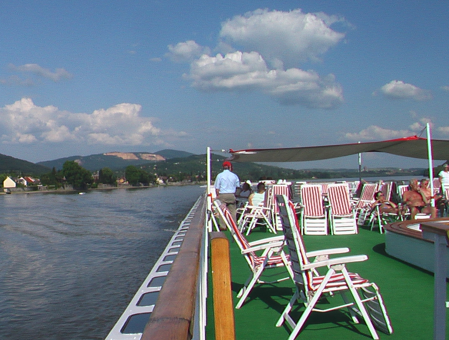 Mittwoch 30.05.2007 Budapest wir kommen. Angelegt haben wir schon. Es ist jetzt 10:30h, um 12:00h gibt es Mittagessen. ( Nehme nur noch ein Gang von drei, das Gleiche am Abend). Um 14:00h geht es zur Stadtrundfahrt. Heute soll es bis 20° werden, grad richtig! Das schönste war für mich der Ausblick spät abends auf dem Deck, das Lichtermeer von Budapest. Die Fahr hoch zur Burg mit einer gigantischen Kirche. Die Innenbemalung stammt noch von den Türken, es war früher mal eine Moschee. Es gibt keinen Fleck in der Kirche der nicht bemalt ist. Die Stadtbilderklärerin hat es echt drauf gehabt. Das Parlament von Budapest ist sehenswert. Donnerstag 31.05. 2007 Ich sitze grad auf dem Sonnendeck ( ohne Sonne) 15°, macht nichts. Letzte Woche auf der gleichen Fahrt, waren in Kalocsa ( wo wir gerade anlegen) 35°, da ist die Klimaanlage ausgefallen. Haben wir mit dem Wetter Glück. Kalocsa ist ein kleines geschichtsträchtiges Kleinstädtchen im Süden von Ungarn Hier wird noch alle von Hand gemacht. Aber lange sind wir nicht geblieben es ging wieder zurück nach Budapest. Freitag 01.06.2007 Heute wollen wir den Stadtteil Pest, wir sind schon wieder auf der Rücktour, ohne Stadtführerin erkunden. Auch mal schön ohne den ganzen Pulk loszuziehen. Waren erst in der berühmten Markthalle, bummelten auf der Rennmeile, Eis essen und eine sehr alte Kirche besichtigen. Die älteste Kirche von Budapest ist ein Schmuckstück das vier Epochen in den Mauern hat. Das alles in Pest ( gesprochen Pescht). Eine kleine Eselsbrücke um die Stadtteile Buda und Pest auseinander zuhalten Buda gleich" B" wie Berge, "Pest gleich "P" wie platt. Es ist jetzt 16:00h und wir sind auf der Fahrt nach Eschtagon. Die Hälfte der Passagiere sind mit den Bussen zum Ausflug nach dem Donau- Knie, kommen um 18:00h wieder zu uns an Bord in Eschtagon. In der Nacht geht die Fahrt nach Bratislava.
