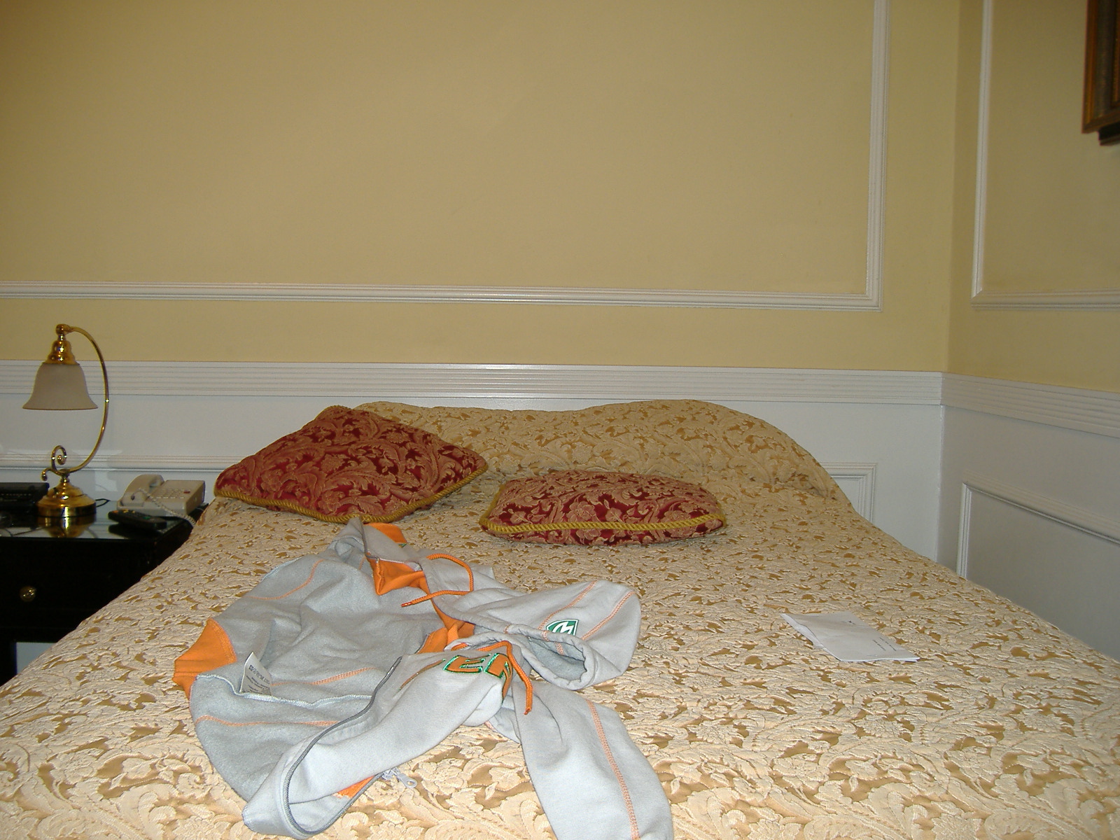über die holprige Autobahn gewippt. Am Hotel angekommen (was übrigens in einem der heißesten Pflaster San Francisco liegt) haben wir eingecheckt oder eher gesagt, wir haben es probiert. Der Portier hat festgestellt, dass wir kein Ehepaar sind (was am Altersunterschied ja auch nicht so leicht festzustellen war) und hat uns in ein Zimmer mit zwei auseinander stehenden Betten gebracht. Der erste Eindruck des Hotels war gut, sah ziemlich edel aus zumindest die Lobby. Über die Zimmer kann man sich dann streiten. Wir haben wie schon erwähnt, jeder ein großes Doppelbett, echt voll gemütlich, da können wir uns voll ausbreiten. Es ist zwar so hoch, dass wir drauf springen müssen aber echt voll gut. Der Rest der Möbel muss irgendwie schon“ Asbachuralt“ sein. Das